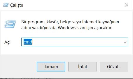 - Çalıştır ekranına “CMD” yazıp enter tuşuna veya mouse ile tamam butonuna tıklayın.